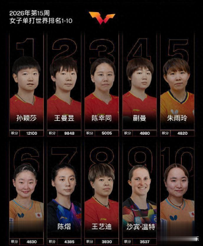 今年她的成绩和排名再创新高,新加坡大满贯连克朱雨玲和王艺迪拿到女单铜牌,澳门世界杯进入女单四强,这也是她第一次收获三大赛奖牌,女单世界排名飙升到世界第九,这也是她首次打开世界前十的大门,另外伊藤美诚位列女单世界第十,如今她的位置还面临进一步下滑的风险,总体来看,国乒女队依然保持绝对的优势,期待国乒女队再接再厉,再创辉煌!
